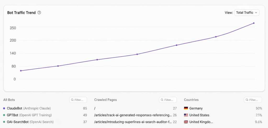 See how AI bots actually read your site with Superlines Crawler Analytics