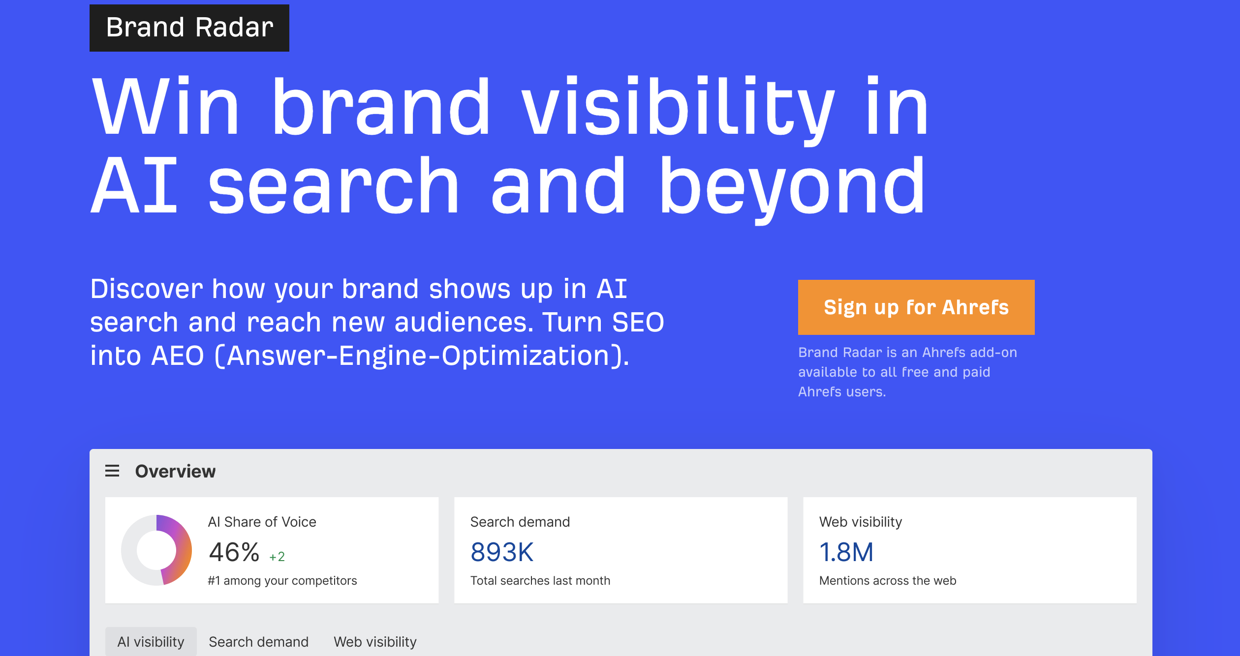 Best for: Ahrefs users who want AI visibility next to backlinks/keywords.